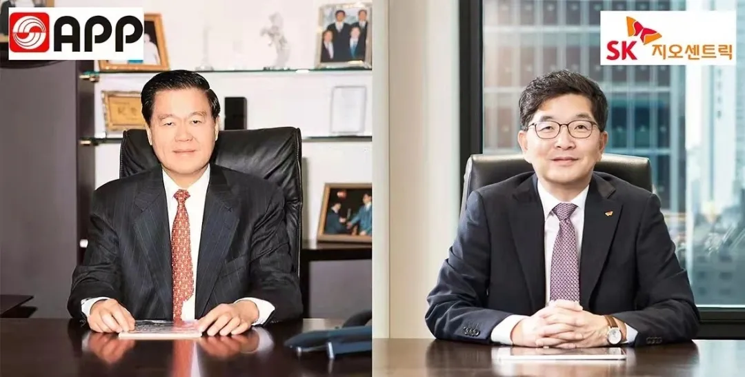金光集團(tuán)董事長兼總裁黃志源(左)與SK Geo Centric羅庚秀社長(右)