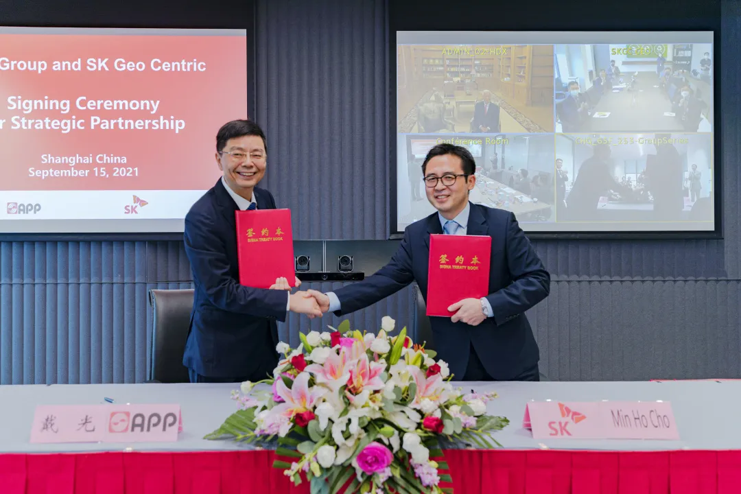 此次簽約儀式現(xiàn)場,金光集團(tuán)APP(中國)副總裁翟京麗女士、金光集團(tuán)APP全球董事長辦公室總經(jīng)理林政道先生以及SK Geo Centric等主要領(lǐng)導(dǎo)齊聚一堂。受疫情影響,金光集團(tuán)董事兼總裁黃志源先生、金光集團(tuán)股東Mr.Trisno Leono,與SK Geo Centric董事會主席及總裁羅庚秀先生通過特殊的視頻連線的方式共同見證兩大集團(tuán)強(qiáng)強(qiáng)聯(lián)合,共襄行業(yè)盛舉的這一偉大時刻。